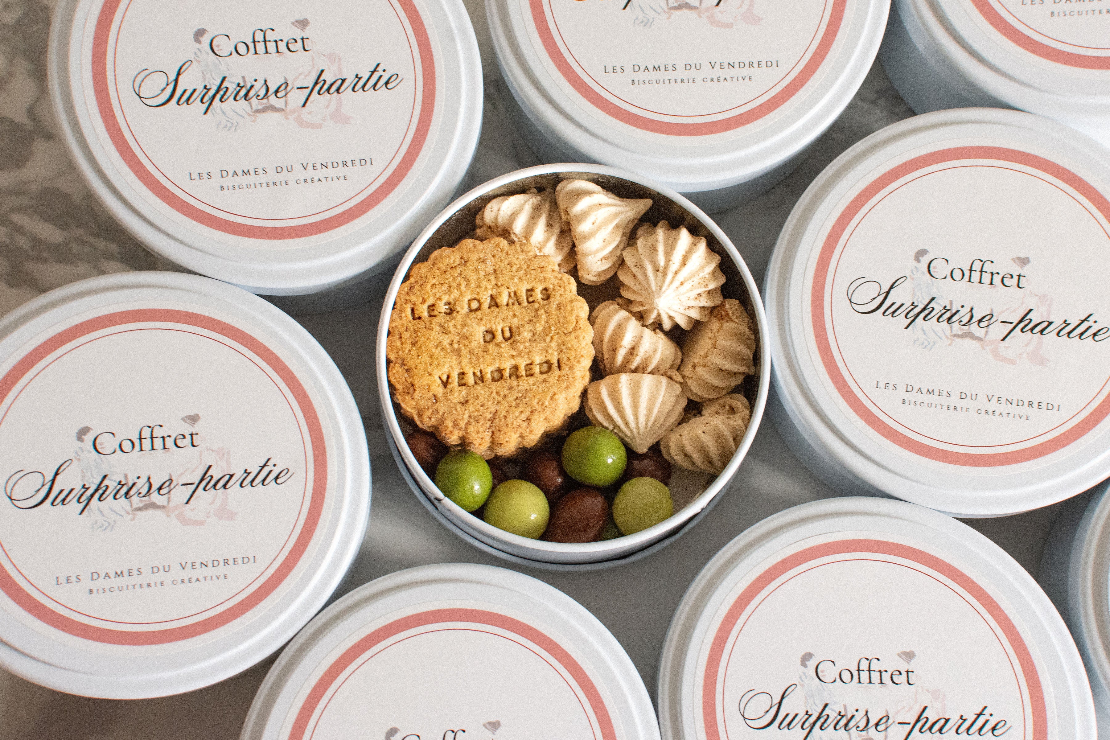 Plongez dans l’univers élégant des Dames du Vendredi, ma biscuiterie créative et découvrez ma gamme de biscuits artisanaux et gourmands. Un cadeau à faire ? Vous trouverez ici l'attention idéale et originale à offrir à vos proches, de l'assortiment de biscuits aux sablés personnalisés. N'hésitez plus !